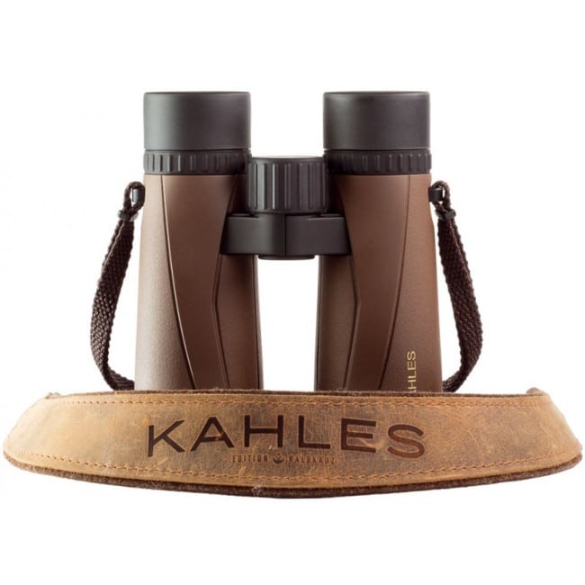 Los accesorios de los prismáticos Kahles (correa portadora de piel y protectores de loden) están fabricados por la firma austriaca de alto diseño para la caza WALDKAUZ.